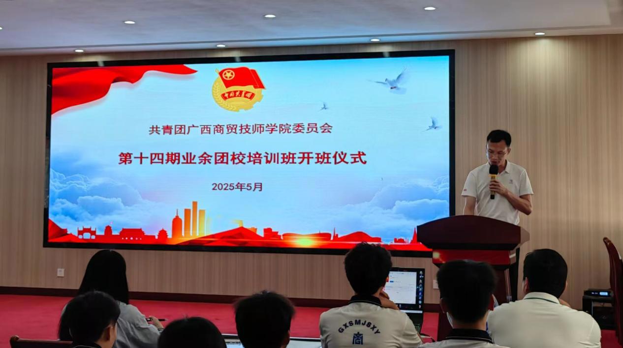为加强我院优秀青年入团前教育,提升对广大青年、团员、团干部的教育和培养,进一步提高团员青年的政治理论素养和服务意识,促进学院团组织建设和校园精神文明建设。2025年5月23日,我院第十四期业余团校培训班在明阳校区笃学楼报告厅举行开班仪式。出席本次开班仪式的有党委委员、副院长岑锦华,党委专职副书记、工会主席周安,以及青年师生代表共计300余人。