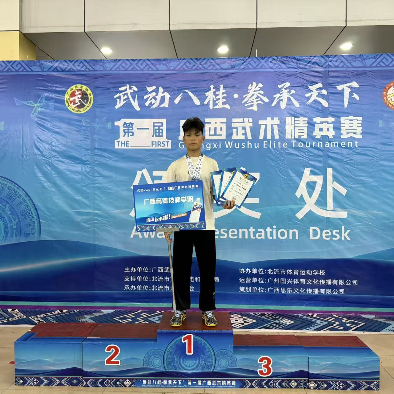 比赛过程中,覃海鑫同学的每一个动作都刚劲有力、行云流水,无论是拳法的迅猛连贯,还是器械的精准操控,都展现出扎实的武术功底和对传统文化的深刻理解。优异成绩背后,更是学院“以社团促育人、以赛事促成长”理念的又一次生动验证。此次夺金,既彰显了社团“教、练、赛”一体化成果,也将激励更多学子在民族传统体育中强体魄、育精神!