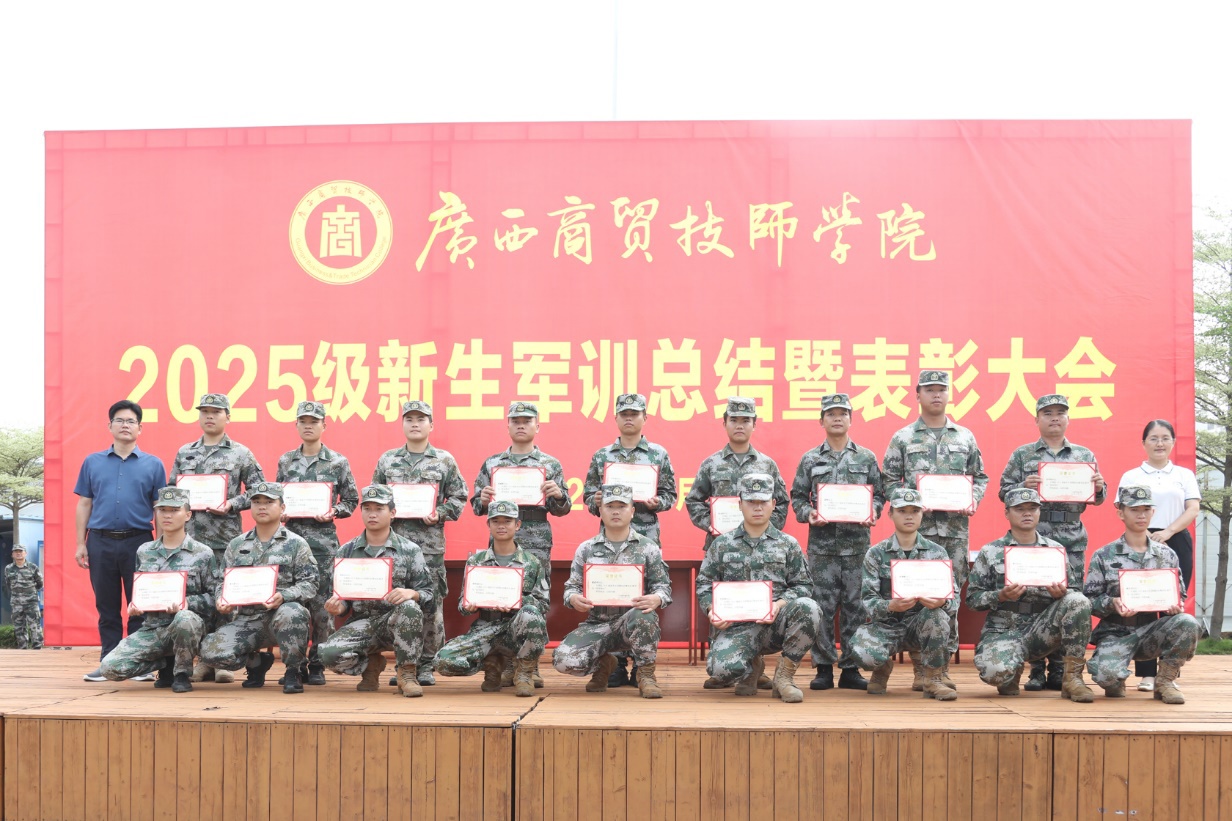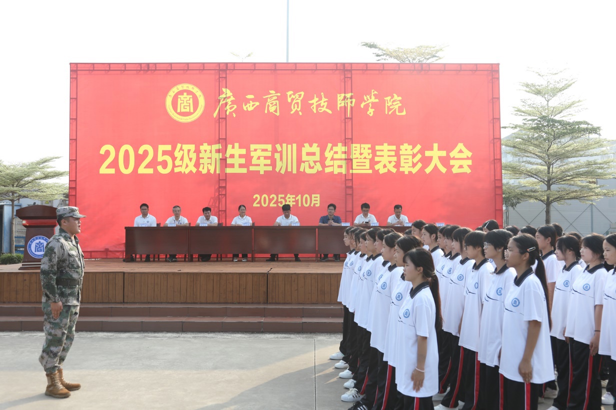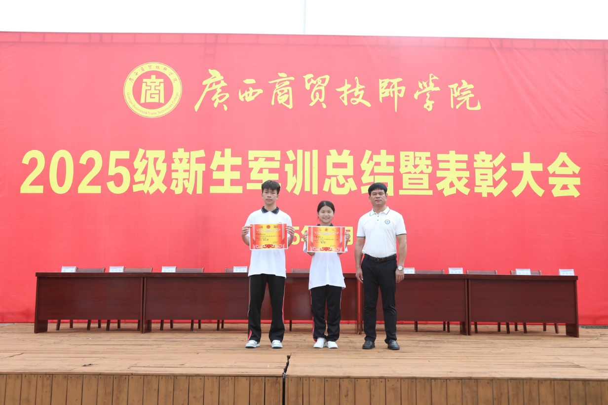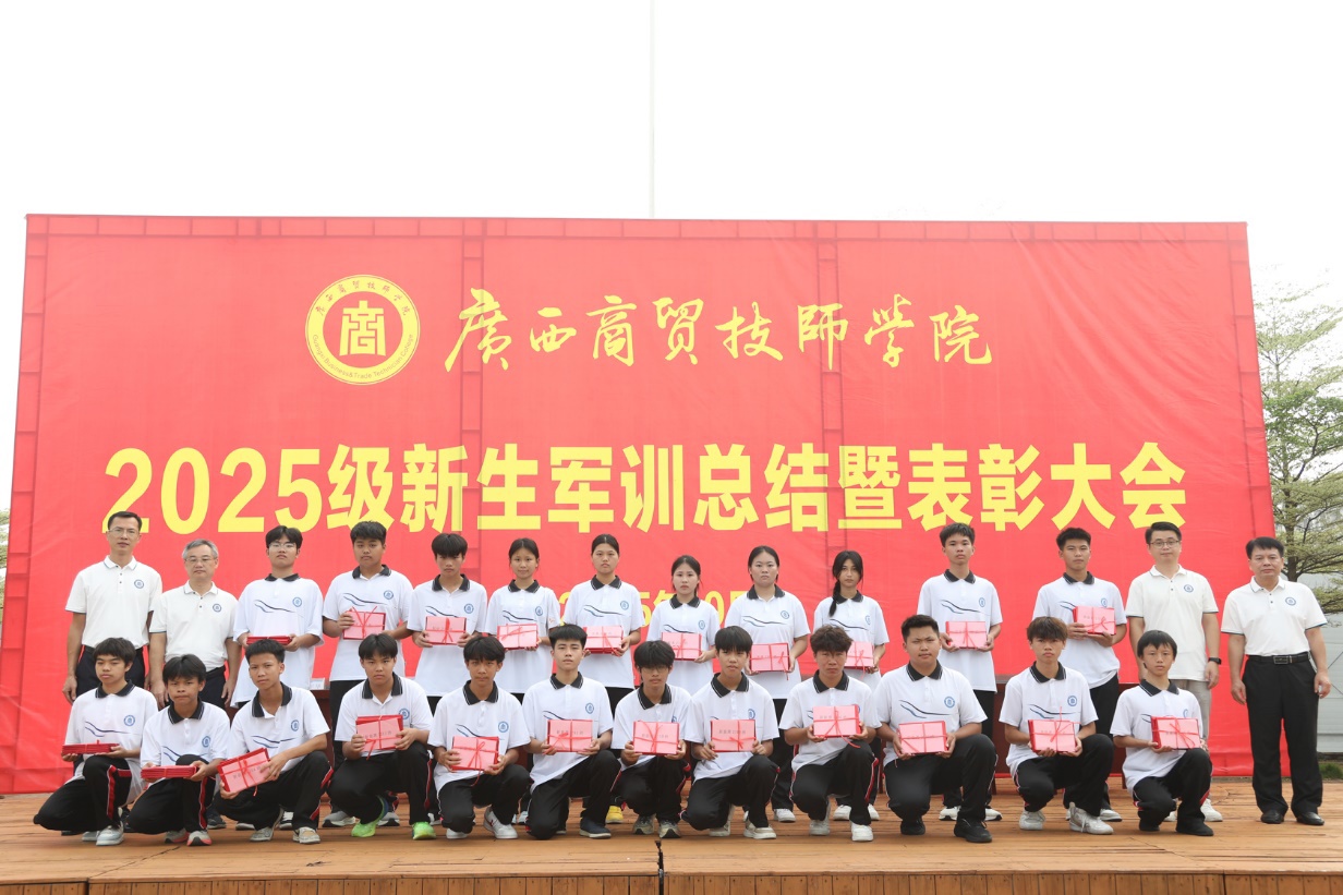 随后,岑锦华副院长宣读了军训标兵表彰文件、优秀教官表彰文件和综合评比优胜班级名单,与会领导为获奖集体和个人颁发荣誉证书。接着,训练总指挥黄海修作军训总结发言。