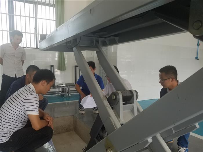 学校领导和验收组老师现场查验大剪式举升机