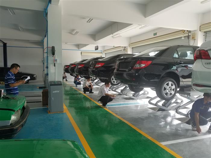教务科组织对汽车电器实训室大剪式举升机、小剪式举升机等汽电专业教学实训设备进行验收