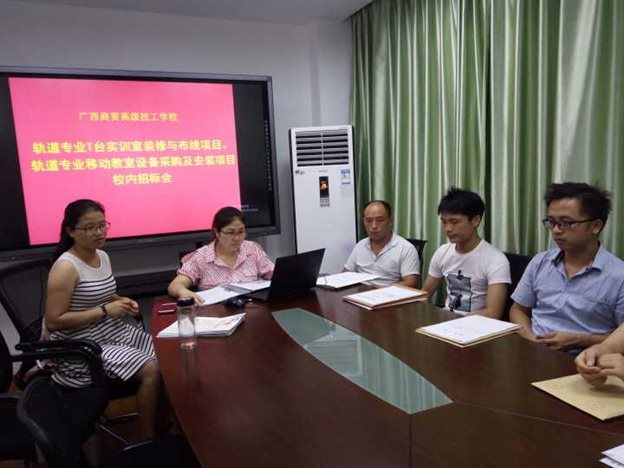 教务科组织开展轨道专业T台实训室装修与布线项目、轨道专业移动教室设备采购及安装项目等两个项目校内招标会2018年6月27日15:30,教务科在电子商务实训教室会议室开展轨道专业T台实训室装修与布线项目、轨道专业移动教室设备采购及安装项目等两个项目校内招标会。两个项目各有三家供应商参加本次会议。校内招标会由教学项目办干事龚慧娟老师主持。学校校长助理黄红波老师、教务科科长区军华老师、财务科科长蒙国壮老师,教务科副科长陈世辉老师,教学项目办主任韦任嫣老师、现代服务教研室主任赖三令老师、现代服务教研室程小丽老师参与评标,学校纪委书记任其江老师全程监督。