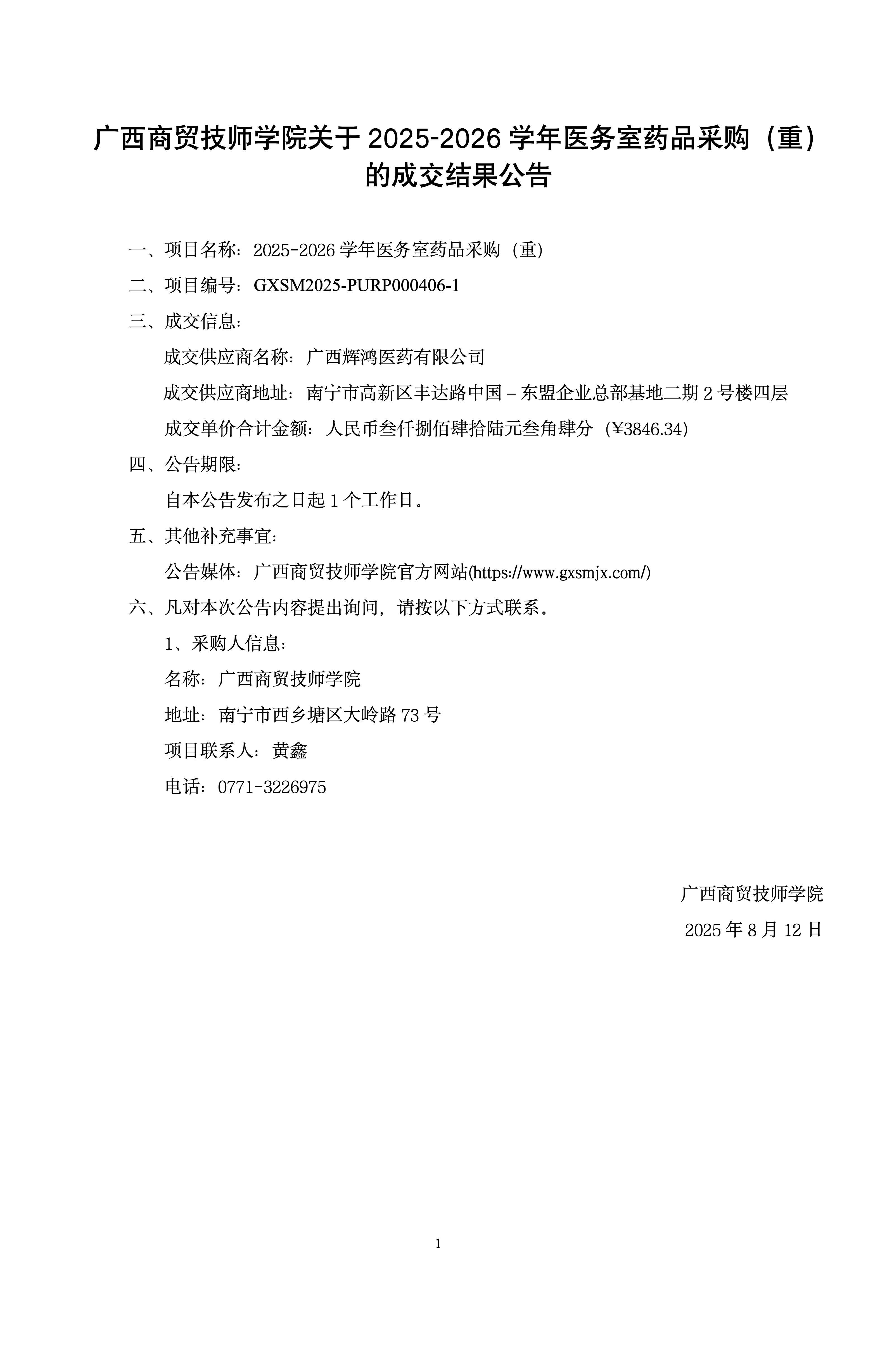 下一篇:广西商贸技师学院关于2025-2026学年医务室药品采购(重)的竞价采购公告