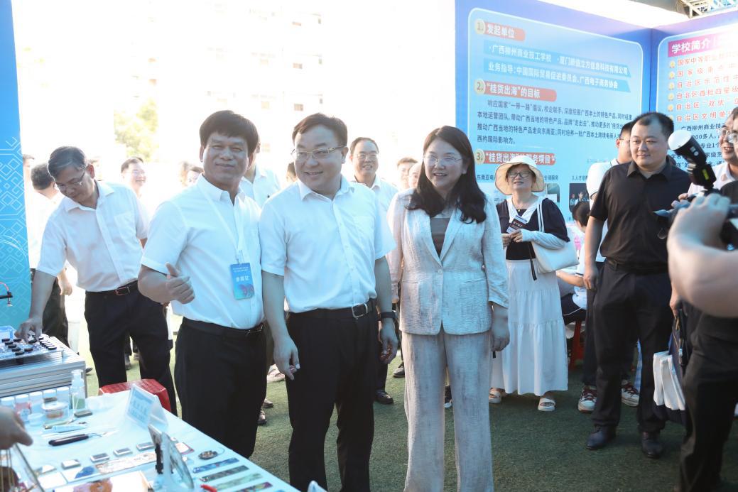 自治区人力资源社会保障厅党组书记、厅长唐标文(左二)及自治区供销合作联社党组书记、理事会主任陈红(左三)莅临我院展位