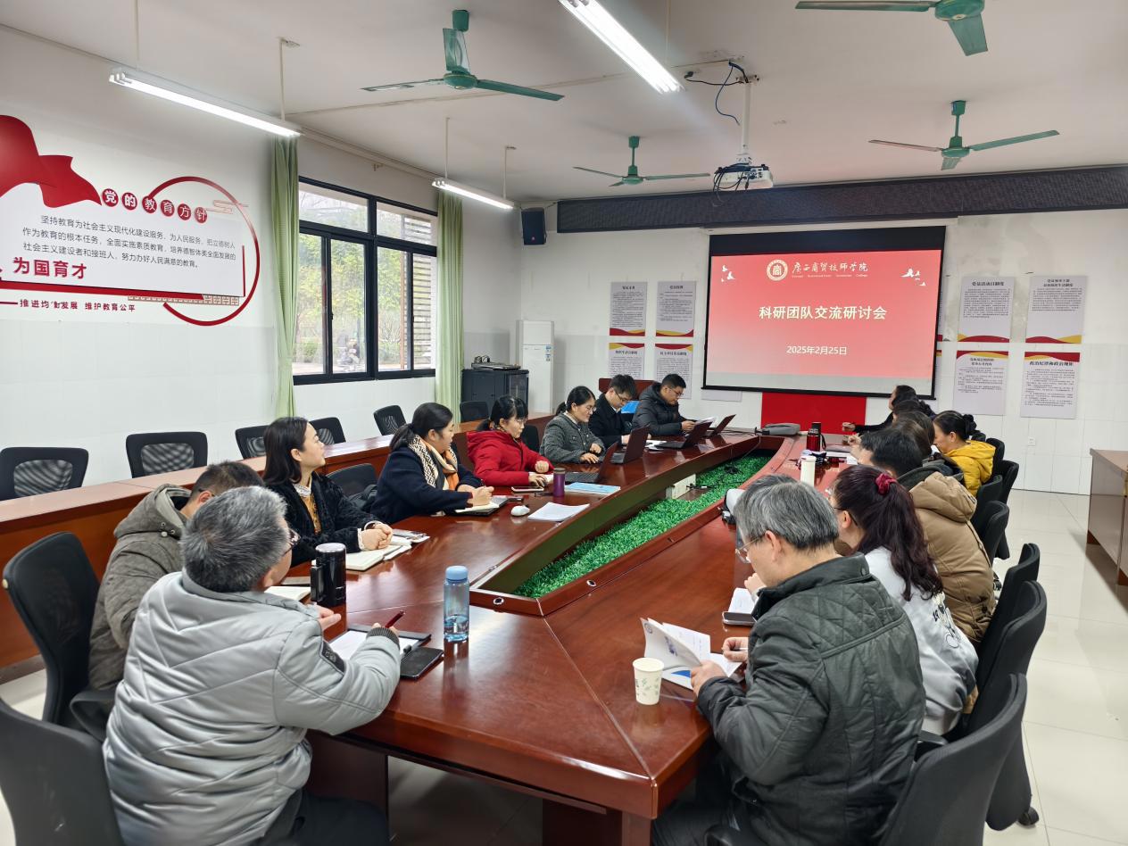 2025年2月25日下午3时,我院在明阳校区组织召开科研团队交流研讨会。会议围绕教育强国建设规划、科研团队发展及教学成果申报等重点工作展开研讨,我院科研团队全体人员参会。会议由党委委员、副院长黄红波主持。
