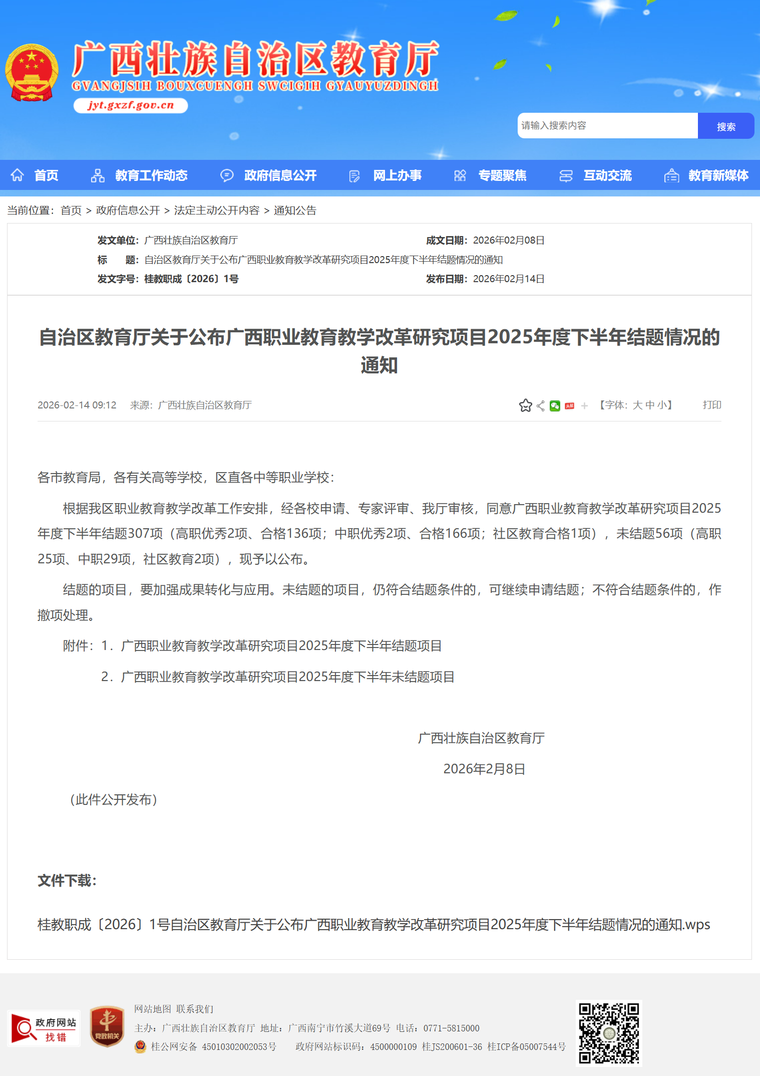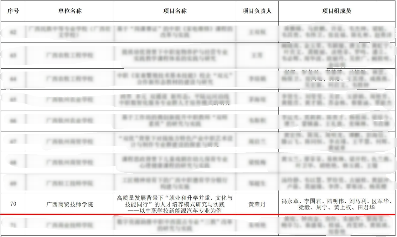 2月8日,广西壮族自治区教育厅发布《关于公布广西职业教育教学改革研究项目 2025 年度下半年结题情况的通知》(桂教职成〔2026〕1号),我院黄荣丹老师主持的项目《高质量发展背景下 “就业和升学并重,文化与技能同行” 的人才培养模式研究与实践——以中职学校新能源汽车专业为例》,经专家评审、自治区教育厅审核,顺利通过结题验收!