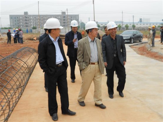 黄校长陪同各位领导考察新校区建设工地