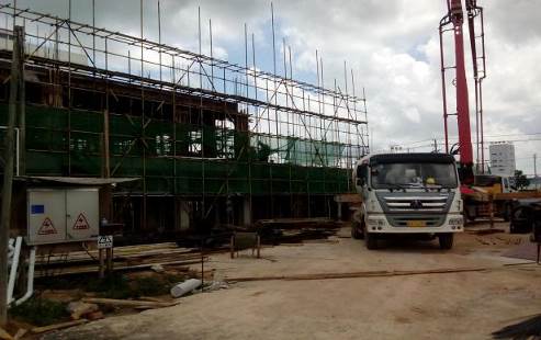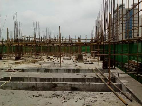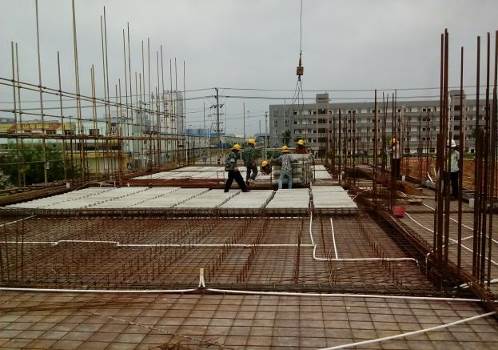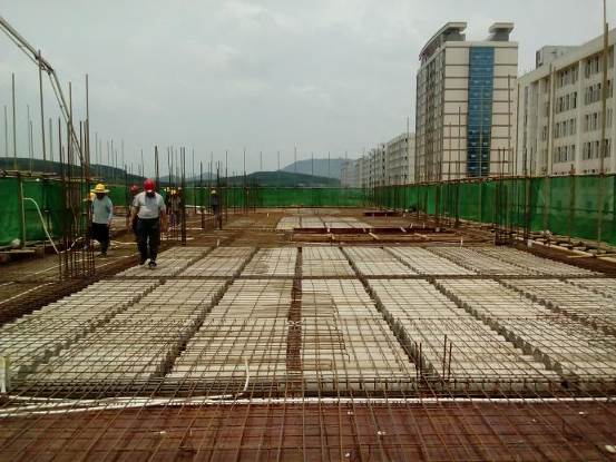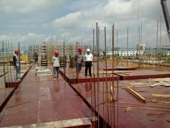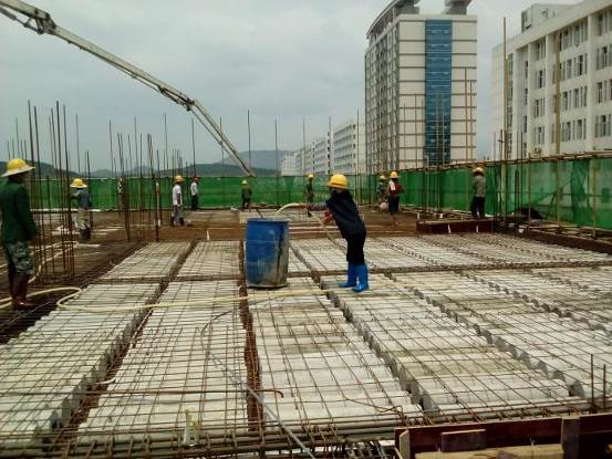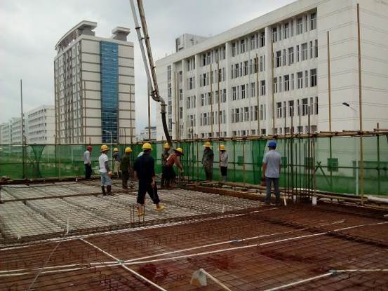 2015年6月16日,进行教学实训综合大楼项目工程二层楼面(1-8轴)和三层柱头(9-23轴)浇筑混泥土施工。
