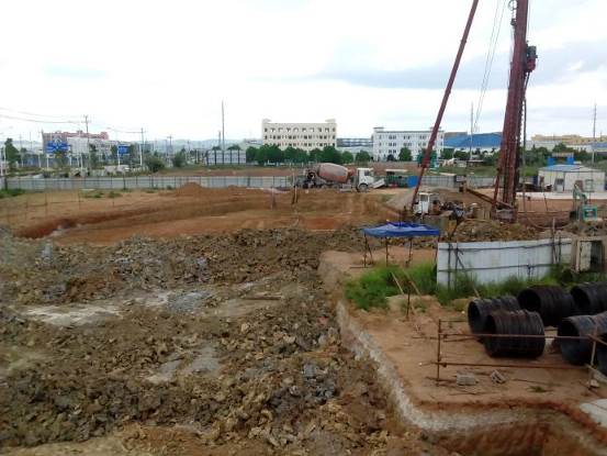 图5. 6月16日,2#实训楼地基处理施工现场。