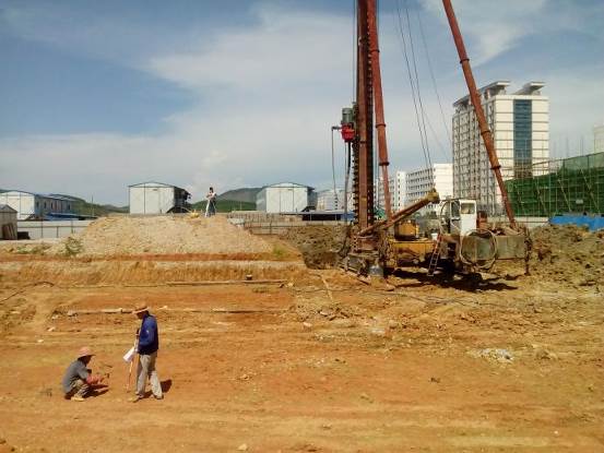 2015年6月12日、15日、16日,明阳新校区2#实训楼项目地基处理(CFG桩)施工有条不紊地进行。