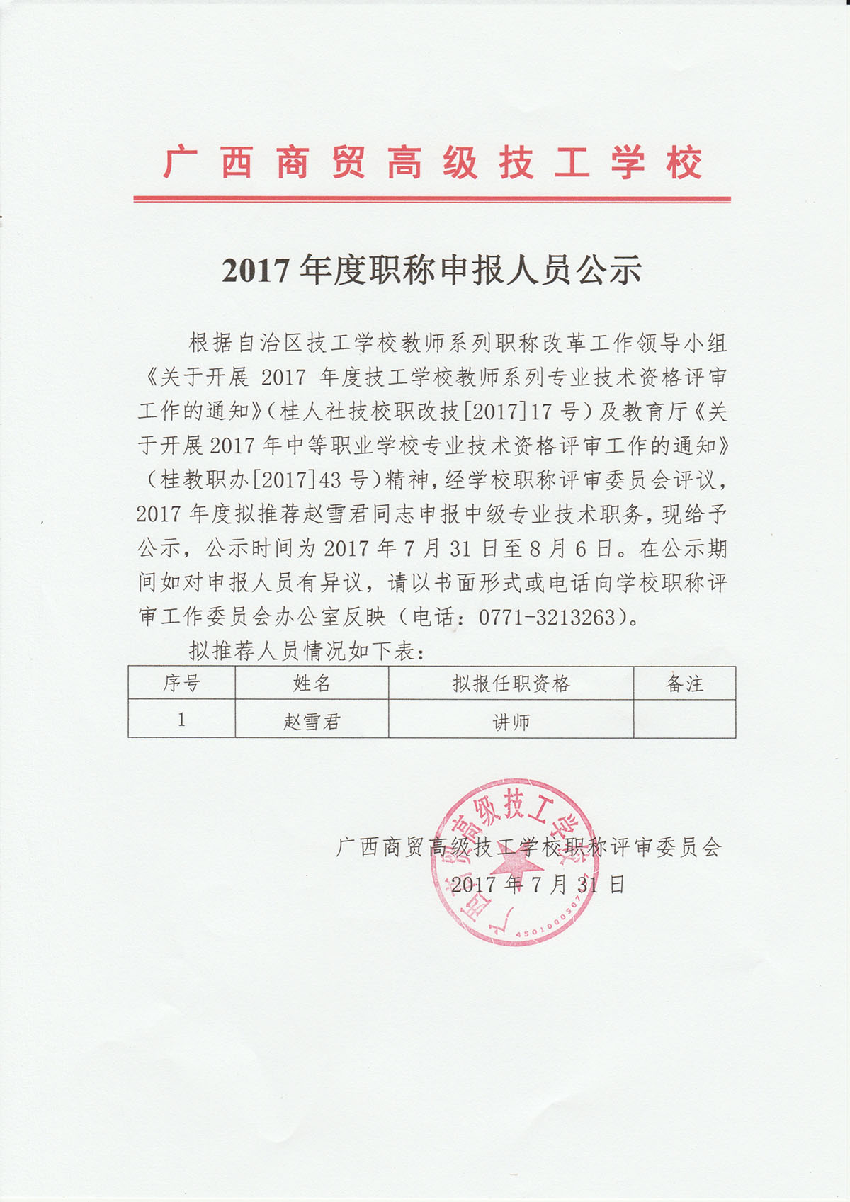 2017年职称申报人员公示