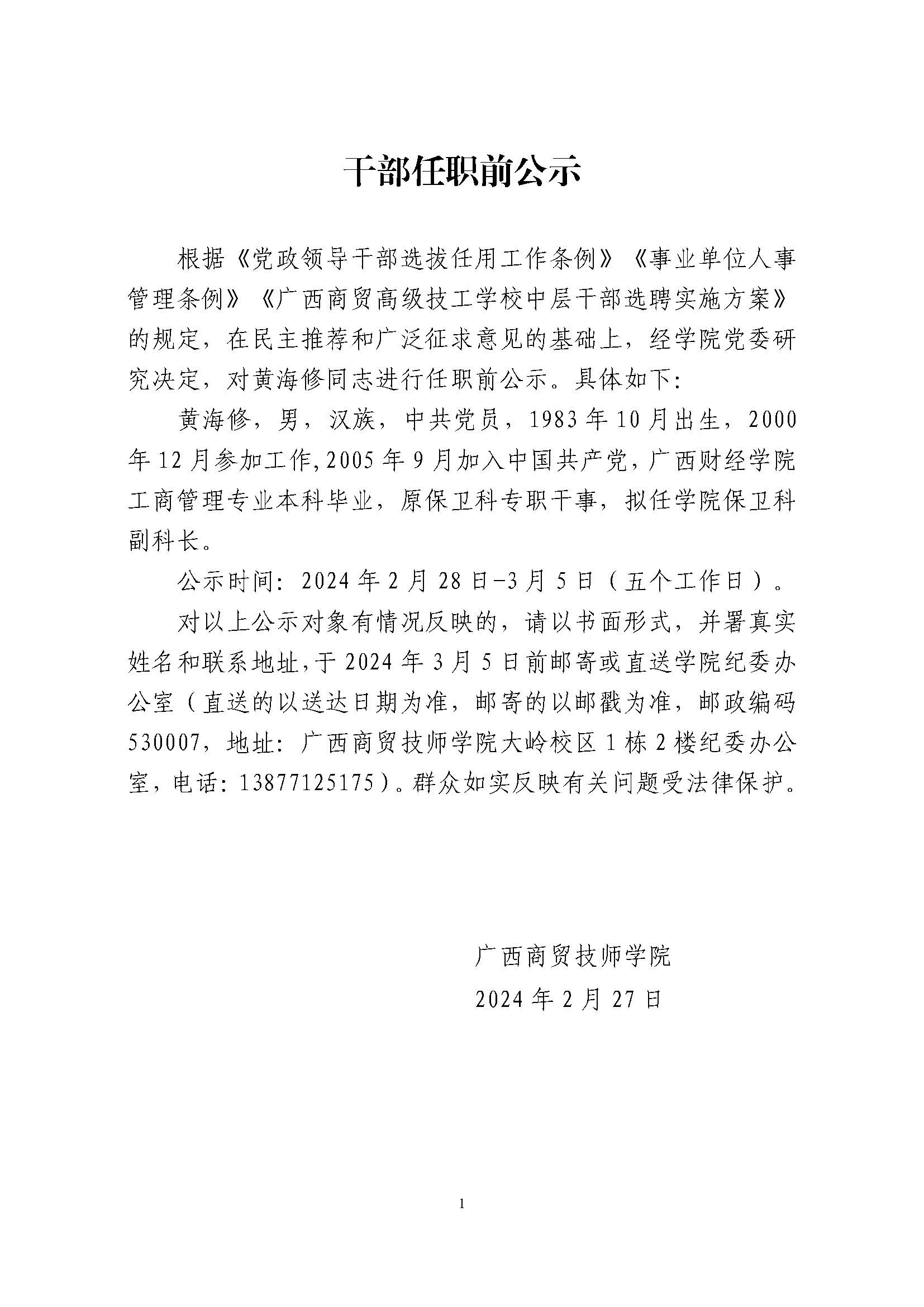 上一篇:中共广西商贸技师学院委员会关于黄海修同志任职的通知