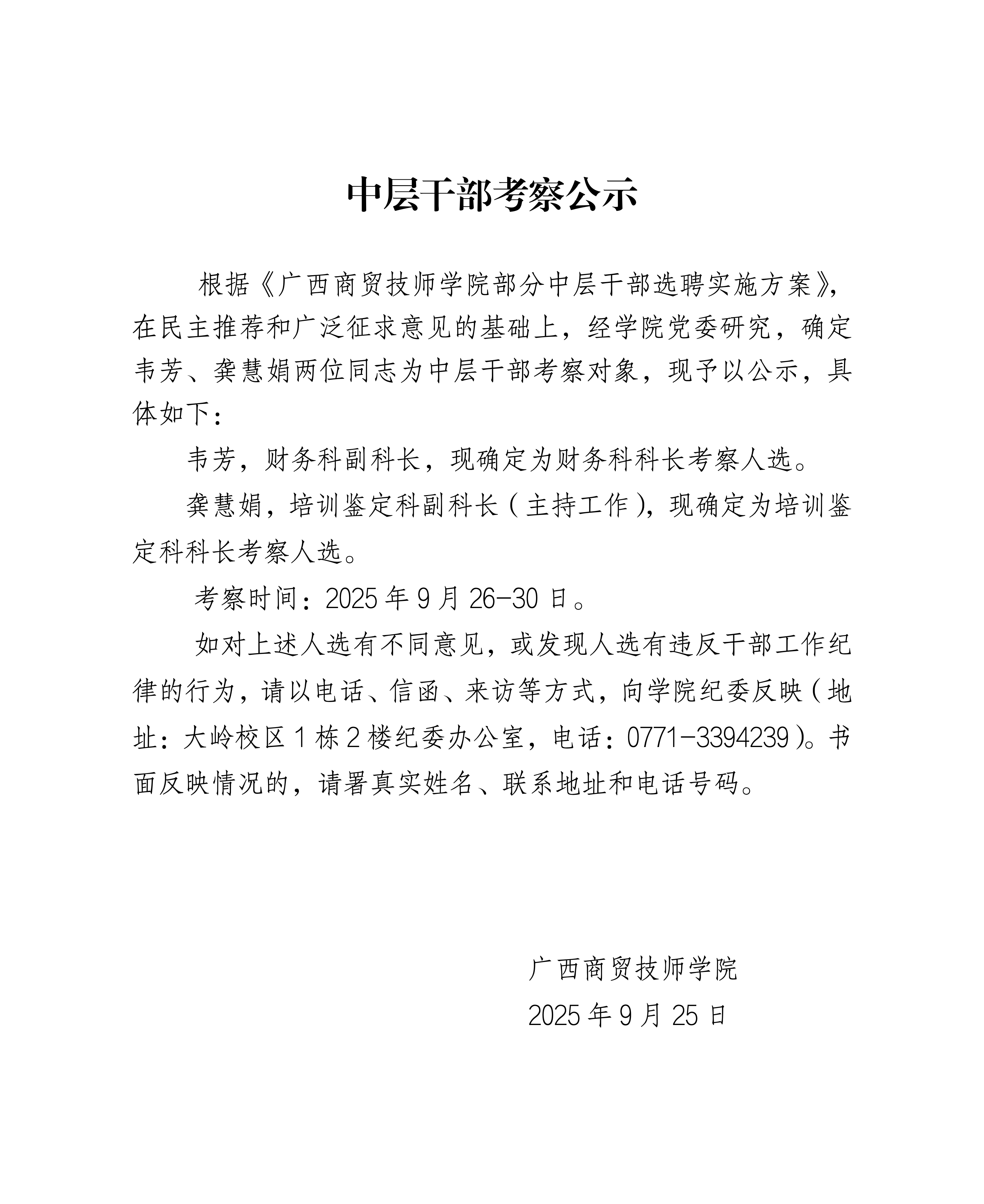 中层干部考察公示