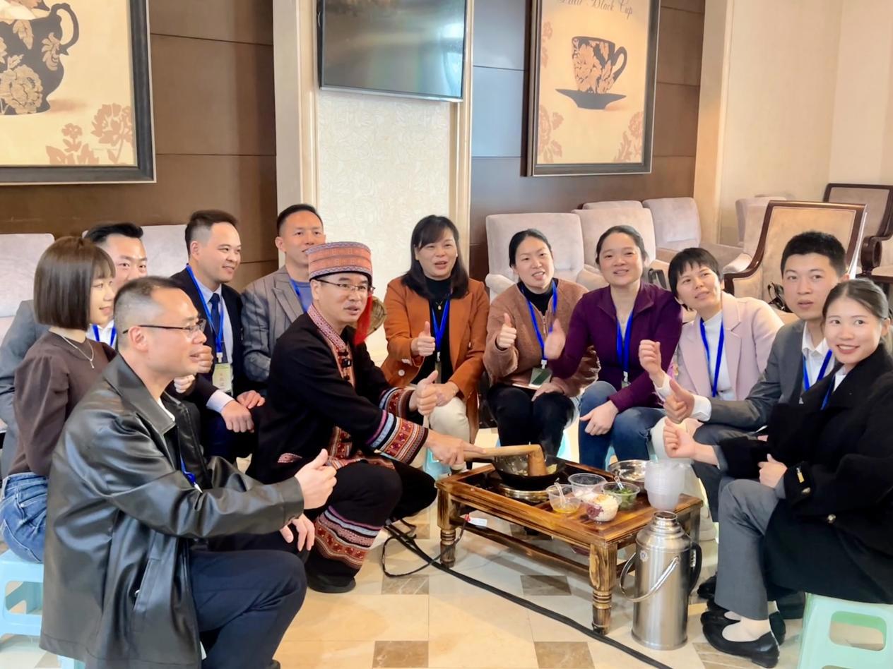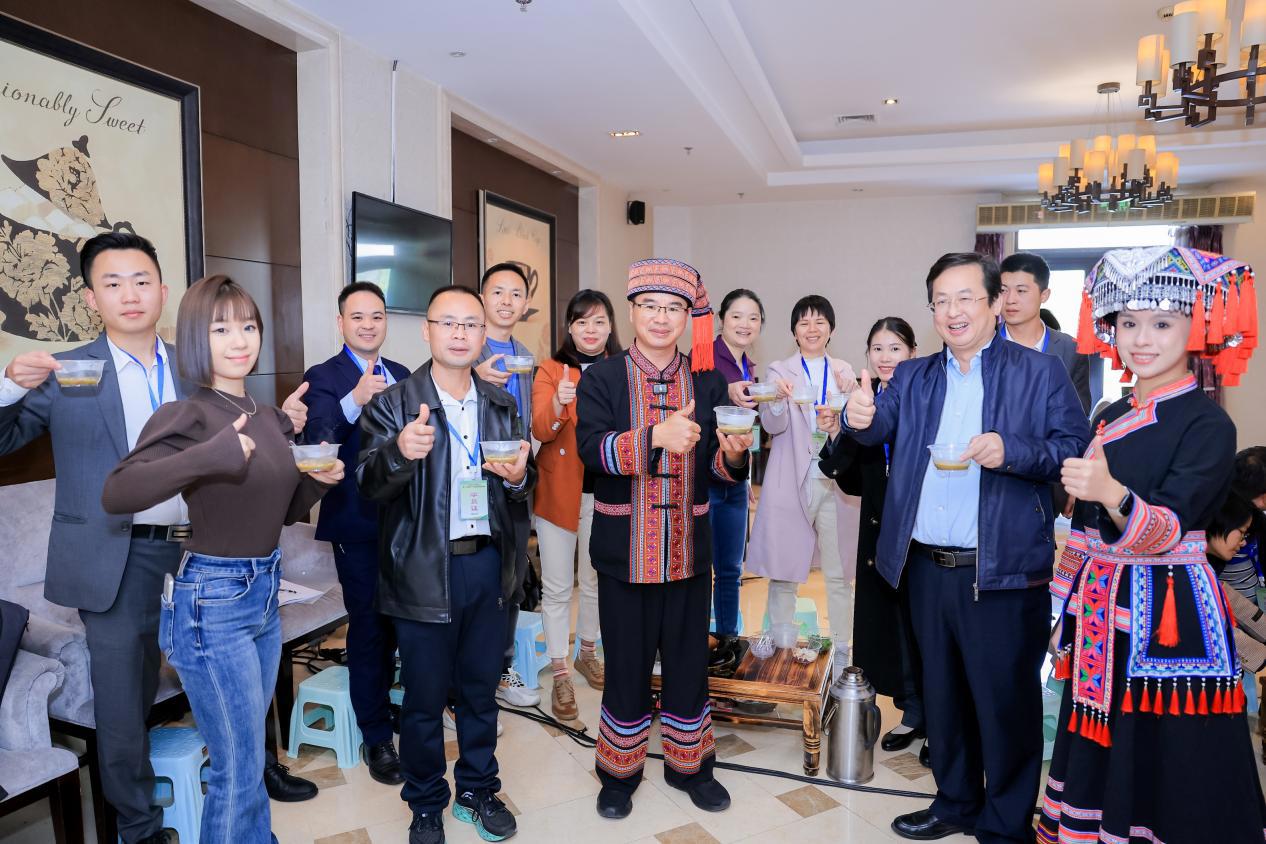 学员与广西驻京办社会工作处冯春明处长(右二)一起品尝瑶族油茶