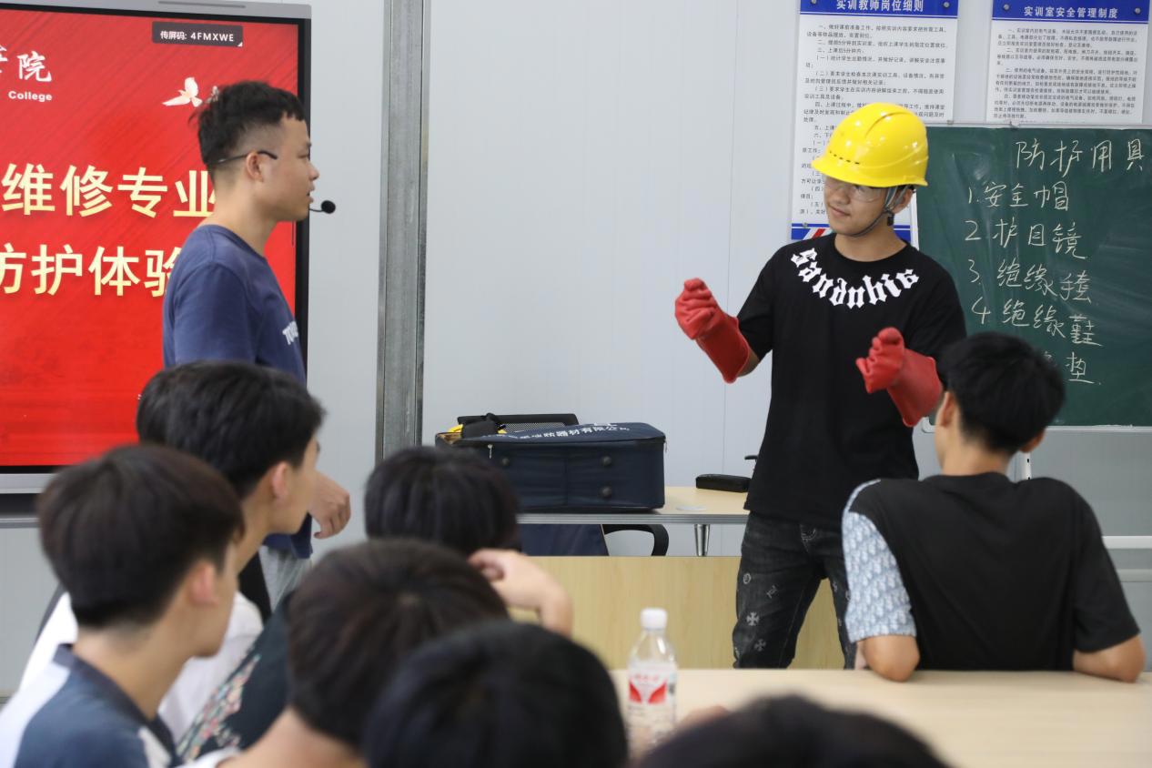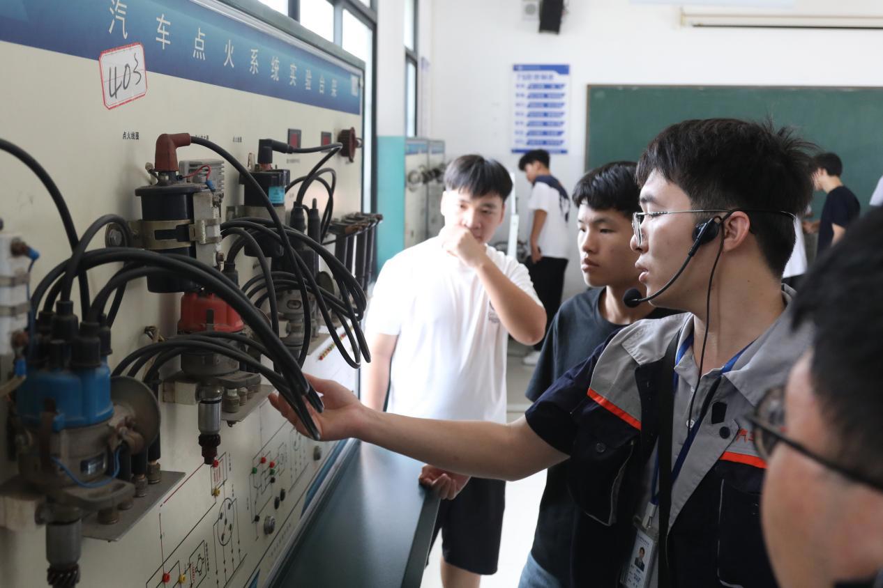 新能源汽车专业学生进行维修防护体验