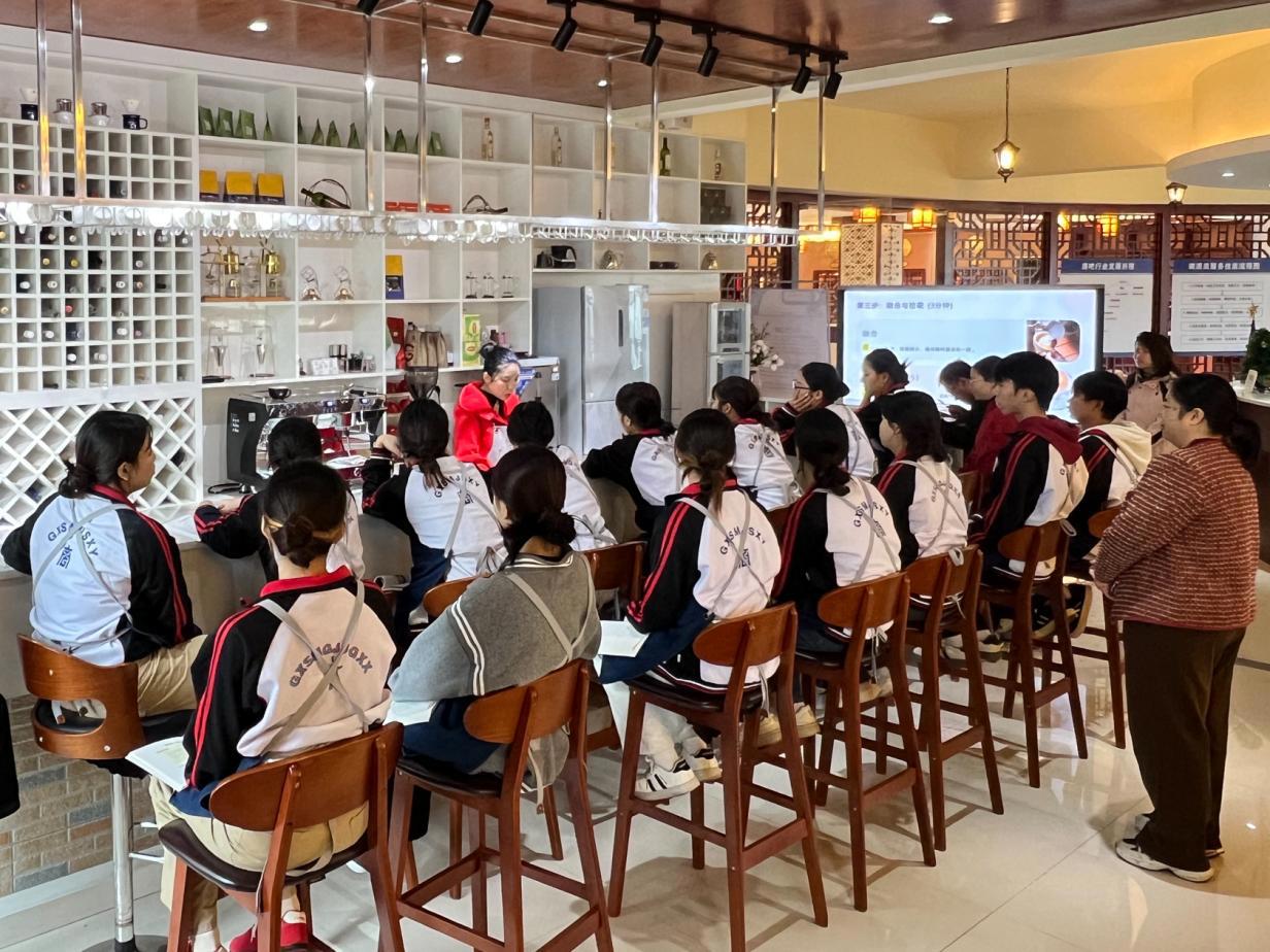 酒店专业教师教授拿铁咖啡制作