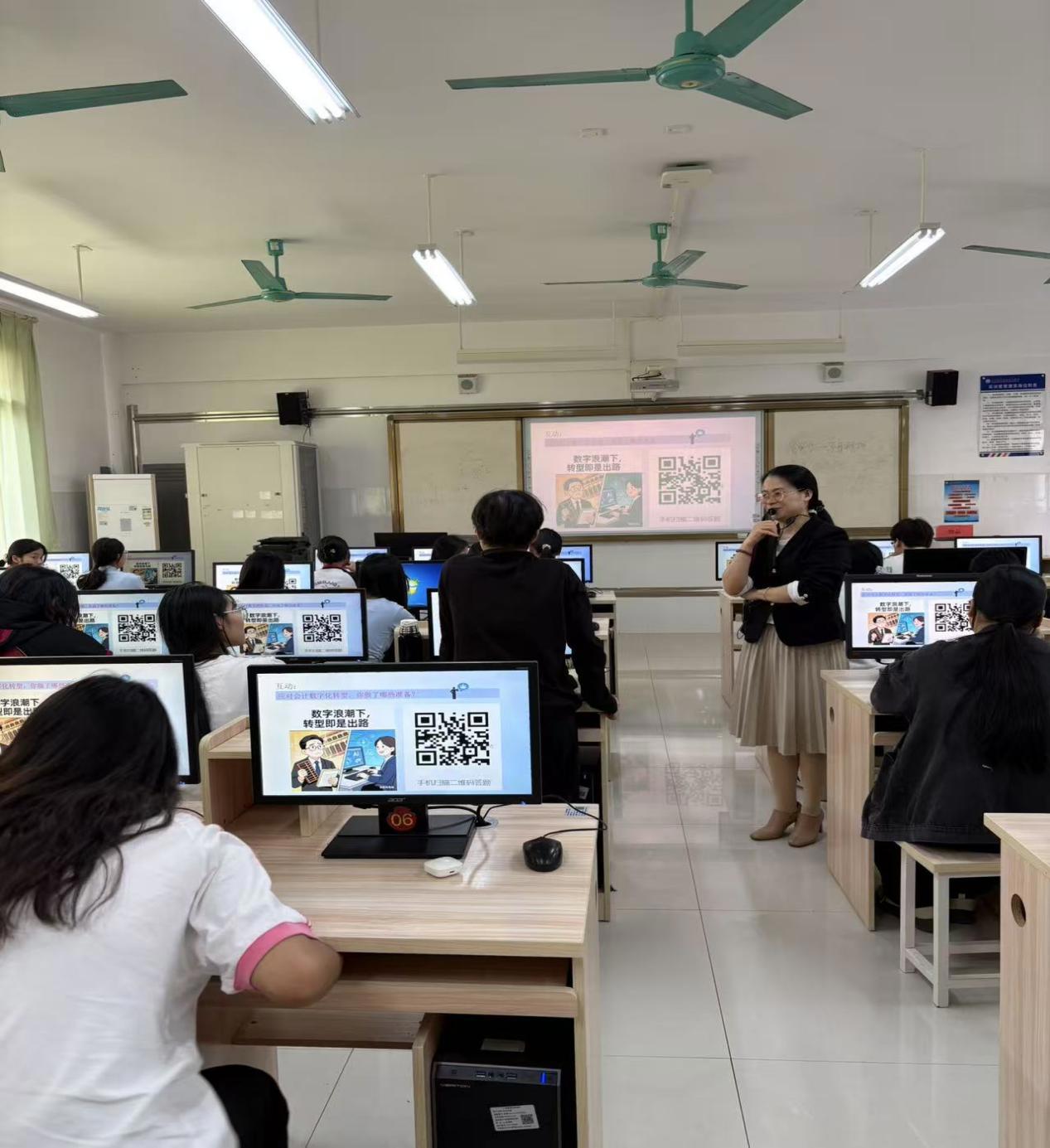 互动交流环节,同学们围绕会计数字化转型中的人才需求、技能提升路径等问题积极提问,韦老师逐一解答并引导学生扫描二维码参与问卷调查,进一步了解大家的学习困惑与发展需求。整场培训既有政策理论高度,又有实践应用深度,内容贴近专业学习与职业发展实际,有效帮助学生更新知识体系,增强了数字化时代的职业适应能力。