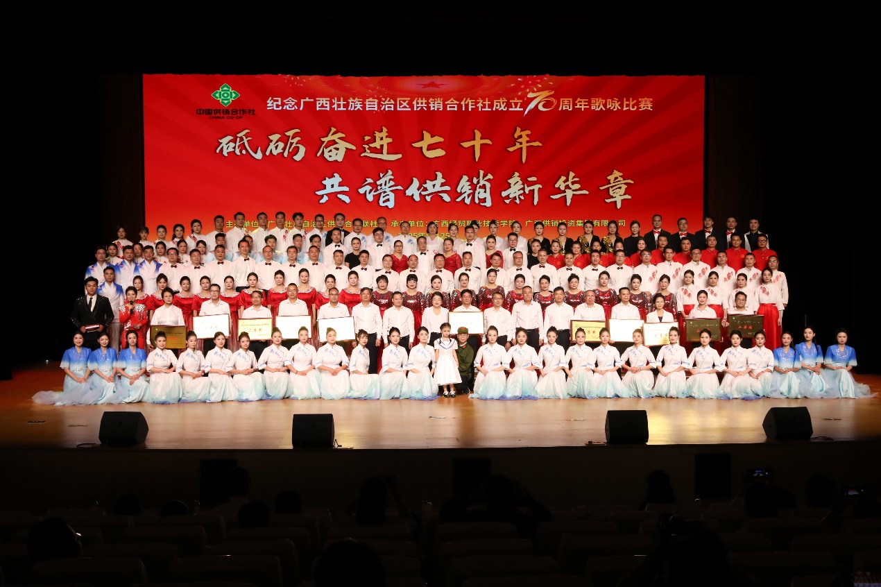 2025年,广西壮族自治区供销合作联社迎来成立70周年的重要历史时刻。为传承供销合作社“扁担精神”“背篓精神”,加强供销合作社文化和精神文明建设,展示新时代供销人风采,9月25日,由广西壮族自治区供销合作联社主办的“砥砺奋进七十年,共谱供销新华章”主题歌咏比赛在广西经贸职业技术学院五合校区隆重举行。广西商贸技师学院合唱队以精湛的演唱和昂扬的精神风貌,在众多参赛队伍中脱颖而出,以全场最高分的优异成绩一举斩获本次比赛的最高奖项——特等奖!这是对我院艺术教育水平与团队凝聚力的充分肯定,更是全院师生献给自治区供销合作联社70华诞的一份深情厚礼。