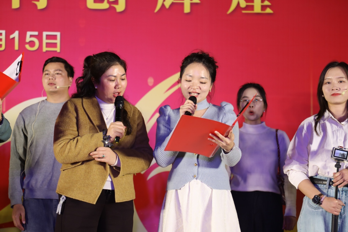 团拜会现场洋溢着温馨喜庆的氛围。演出在学院领导班子成员饱含深情的集体朗诵中拉开序幕,他们以铿锵有力、气势磅礴的诵读,表达了对学院发展的坚定信念和对全体教职工的新年祝福,为晚会奠定了昂扬奋进的基调。