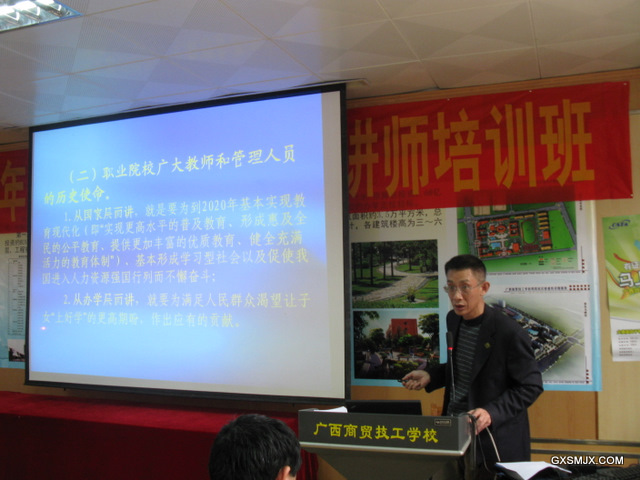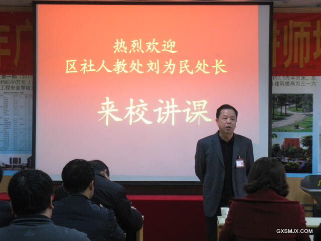 3月15日,在我校教育教学改革培训会上,学校邀请到了中等职业教育专家、自治区供销社人事教育处刘为民处长给老师们作《适应推进教改要求,打造开拓创新团队》的专题讲座,刘处长就中等职业学校开展教改的必要性和紧迫性、推进课改的核心和难点、发展教改的有效途径、构建高素质教改团队的初浅设想等方面与大家进行交流与探讨。我校黄学军校长等主要领导、各教研处主任和全体教职人员参加了这次培训。讲座深入浅出,具有很强的指导性、针对性和启发性,全校教师受益匪浅。