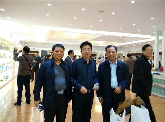 黄学军校长(左一)、李荣波副校长(右一)向全国供销行指委驻会副秘书长聂云杰教授(中)