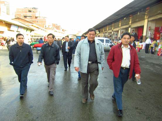 学员们在五里亭果蔬批发市场副总陆先生(左三)的陪同下参观市场